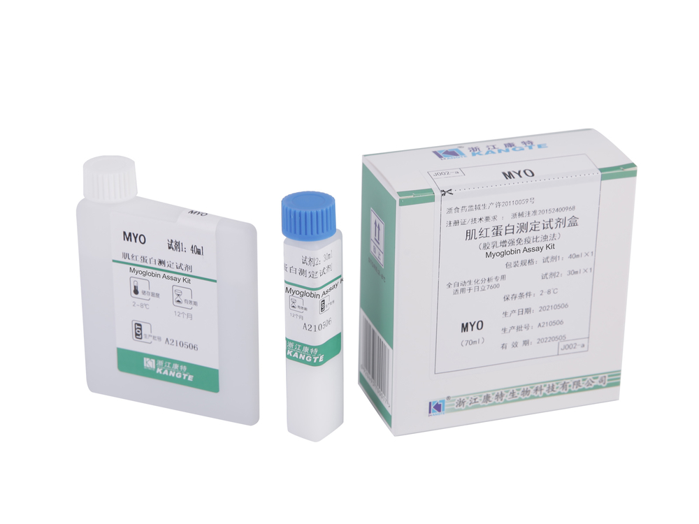 kit de detecção de mioglobina é uma ferramenta de diagnóstico usada para medir o nível de mioglobina em uma amostra biológica, normalmente sangue. A mioglobina é uma proteína encontrada no tecido muscular e serve como marcador de dano muscular. Níveis elevados de mioglobina no sangue podem indicar condições como ataque cardíaco, rabdomiólise ou trauma muscular. O kit de detecção de mioglobina normalmente utiliza um ensaio, como um ELISA, para quantificar a quantidade de mioglobina presente em uma amostra. Os resultados do ensaio podem ajudar os profissionais de saúde a diagnosticar e monitorar condições relacionadas a danos musculares.