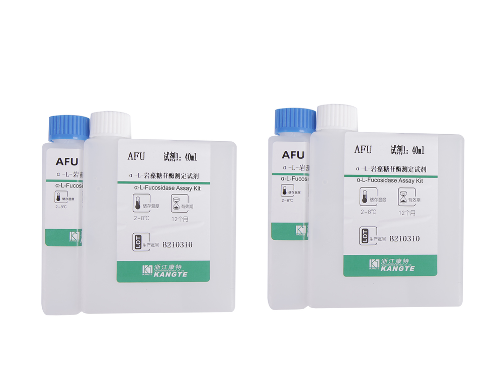 O kit é enviado com gelo azul para garantir o armazenamento seguro dos reagentes de teste a -20°C no momento do recebimento. Todos os componentes não devem ser expostos ao calor ou luz forte durante o armazenamento e uso. Este kit de ensaio contém 100 testes para atividade de ?-L-fucosidase e é baseado em um método colorimétrico (405 nm). Este método cinético não radioativo baseia-se na clivagem de um substrato sintético contendo 4-nitrofenol para liberar um derivado de p-nitrofenol clorado intensamente colorido. É um ensaio rápido e preciso, sem necessidade de solução de parada, permitindo testes de alto rendimento em soro, plasma, tecido ou lisado celular. Faixa de detecção linear de 1 a 100 U/L.
